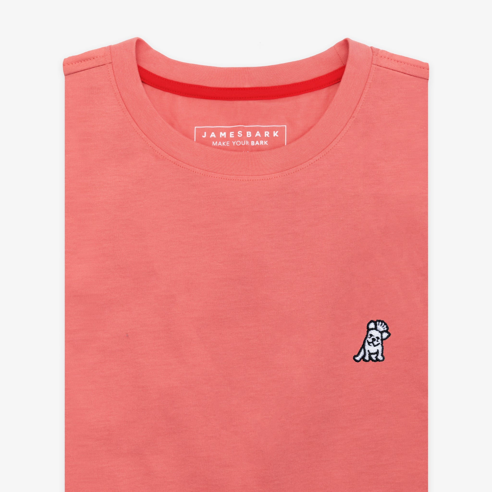 Camiseta Rosada Manga Corta Cuello Redondo Logo Blanco