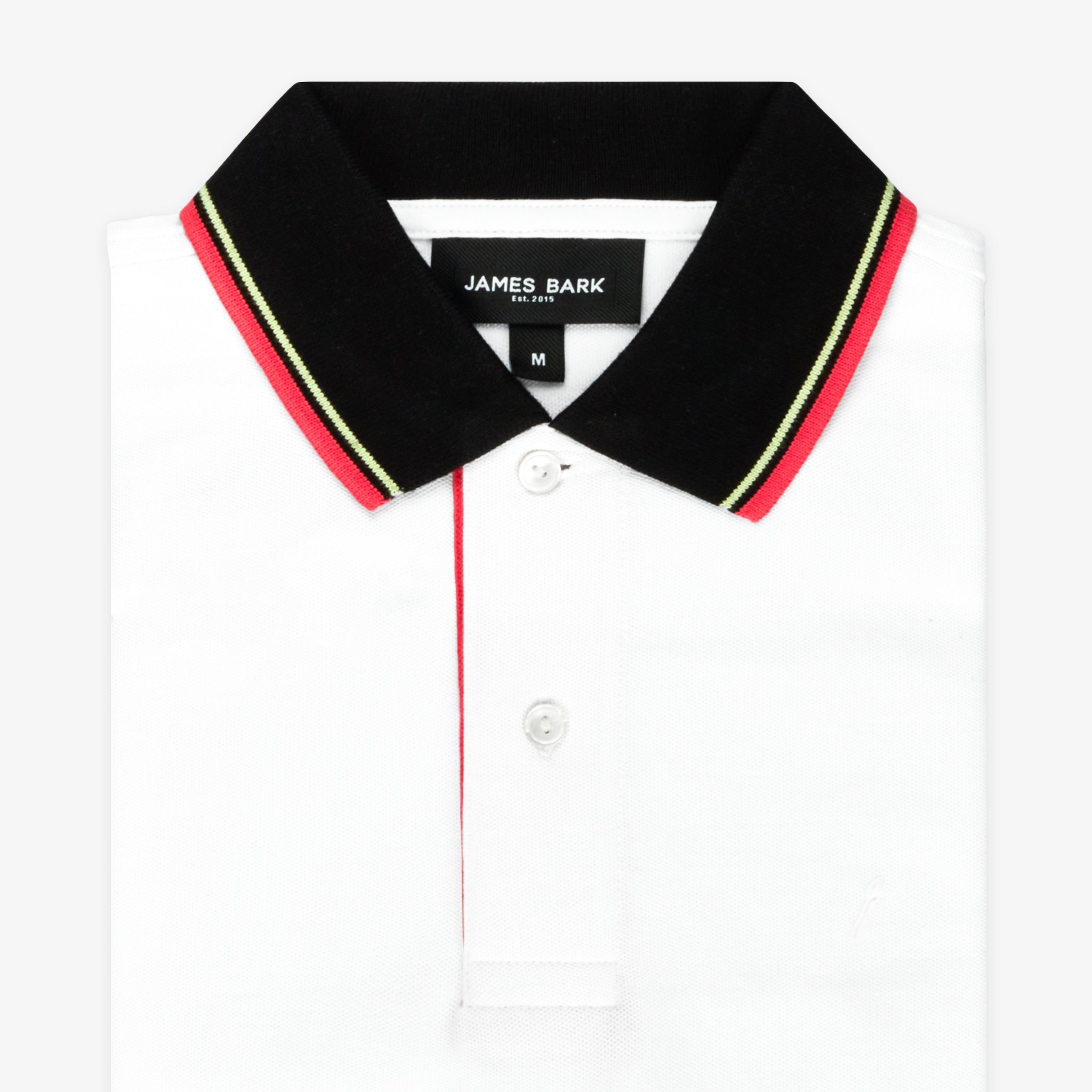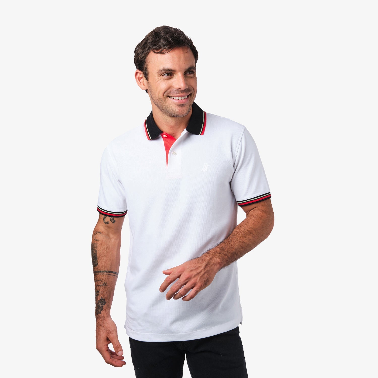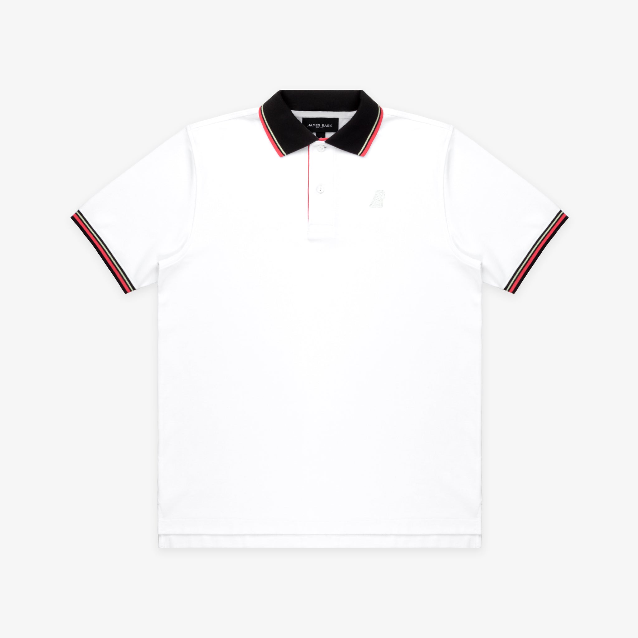 Polo Blanca con Rayas y Detalles Rojos y Negros