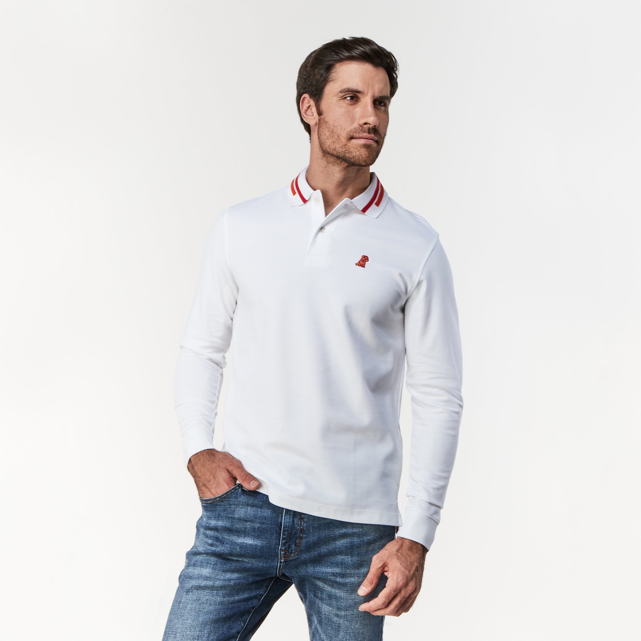 Esta Polo manga larga confeccionada 100% en algodón Pima es excepcionalmente suave y de altísima calidad. Los detalles de estilo como el cuello a rayas añaden sofisticación a la silueta clásica, lo cual la hace la elección perfecta para una salida nocturna. ¡Realza tu estilo con esta camisa polo que combina elegancia y comodidad!