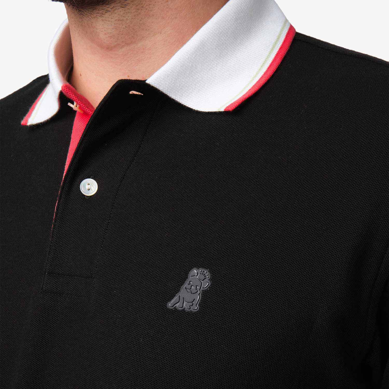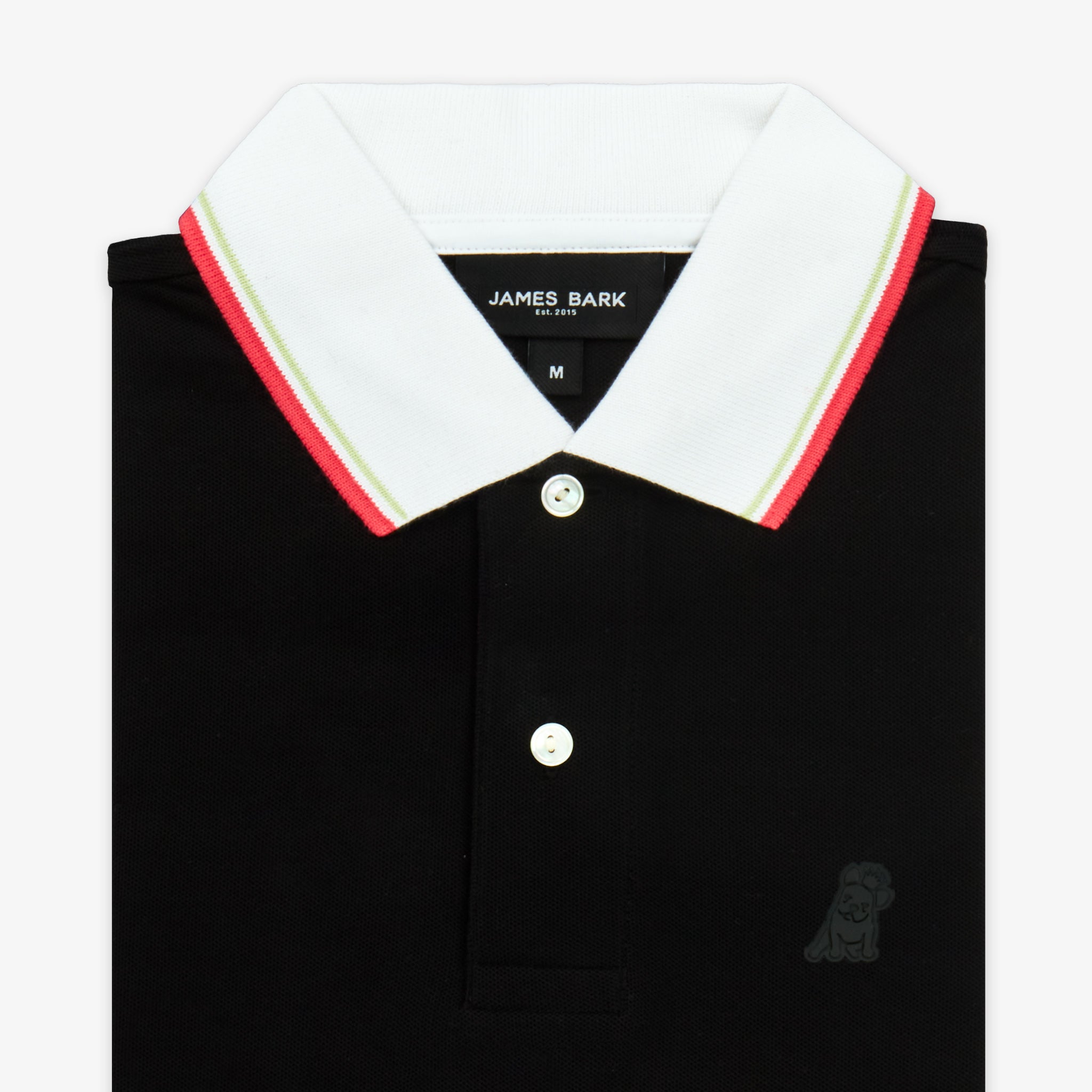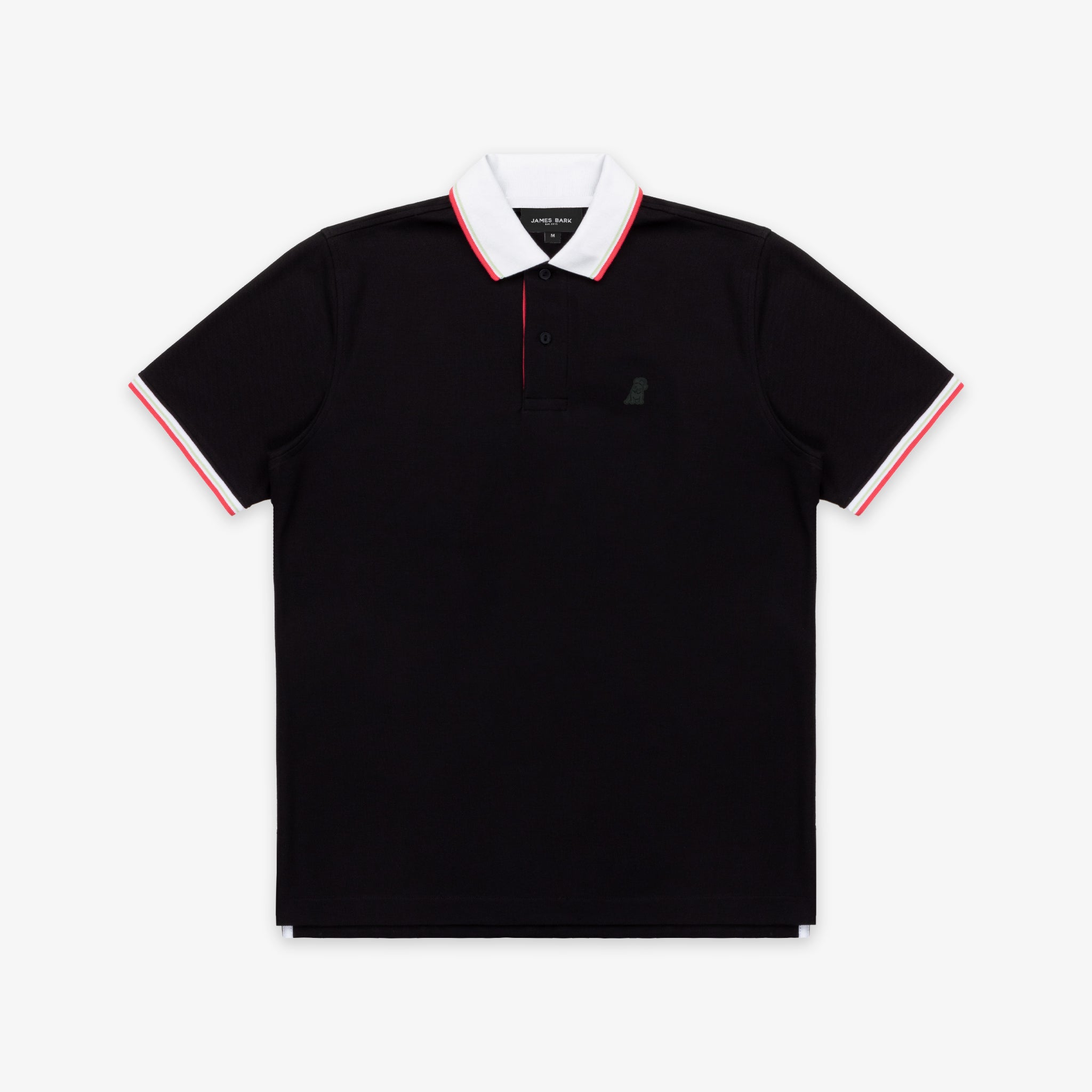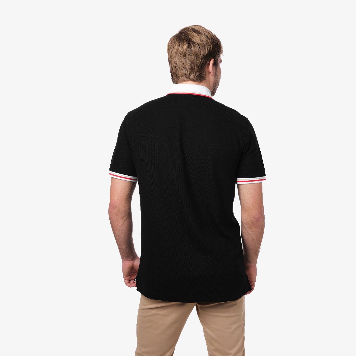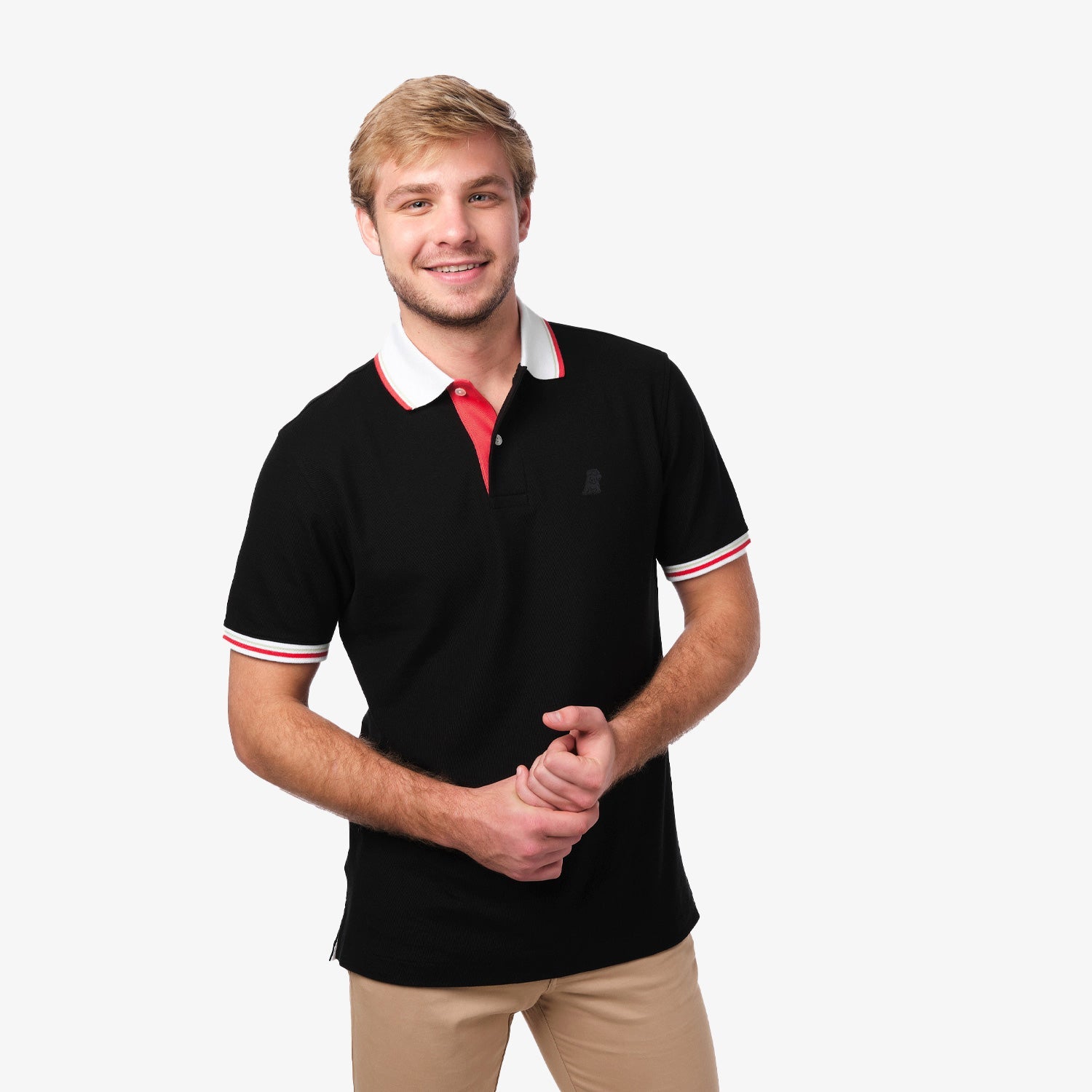 Polo Negra con Rayas y Detalles Rojos y Blancos