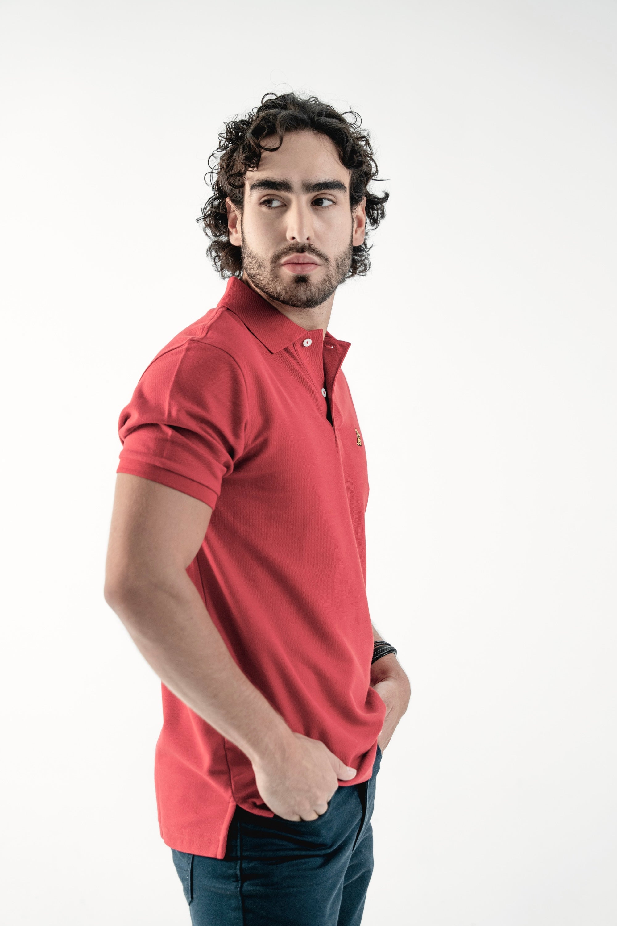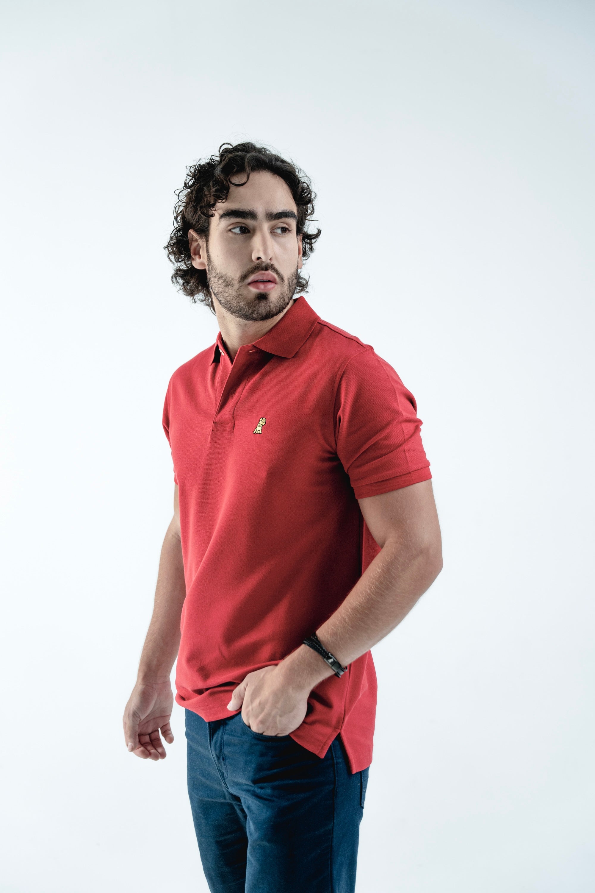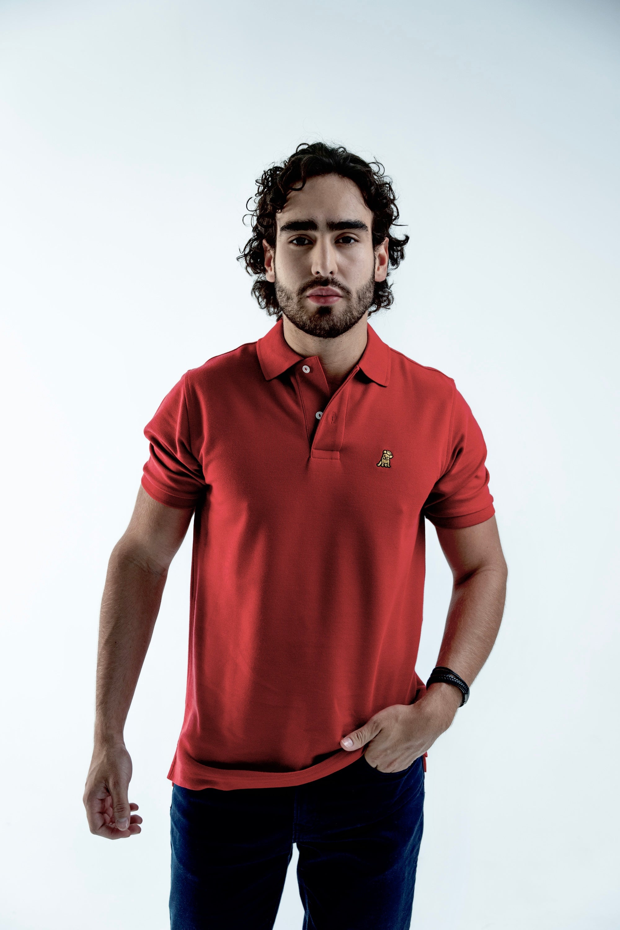 Polo Roja Logo Dorado